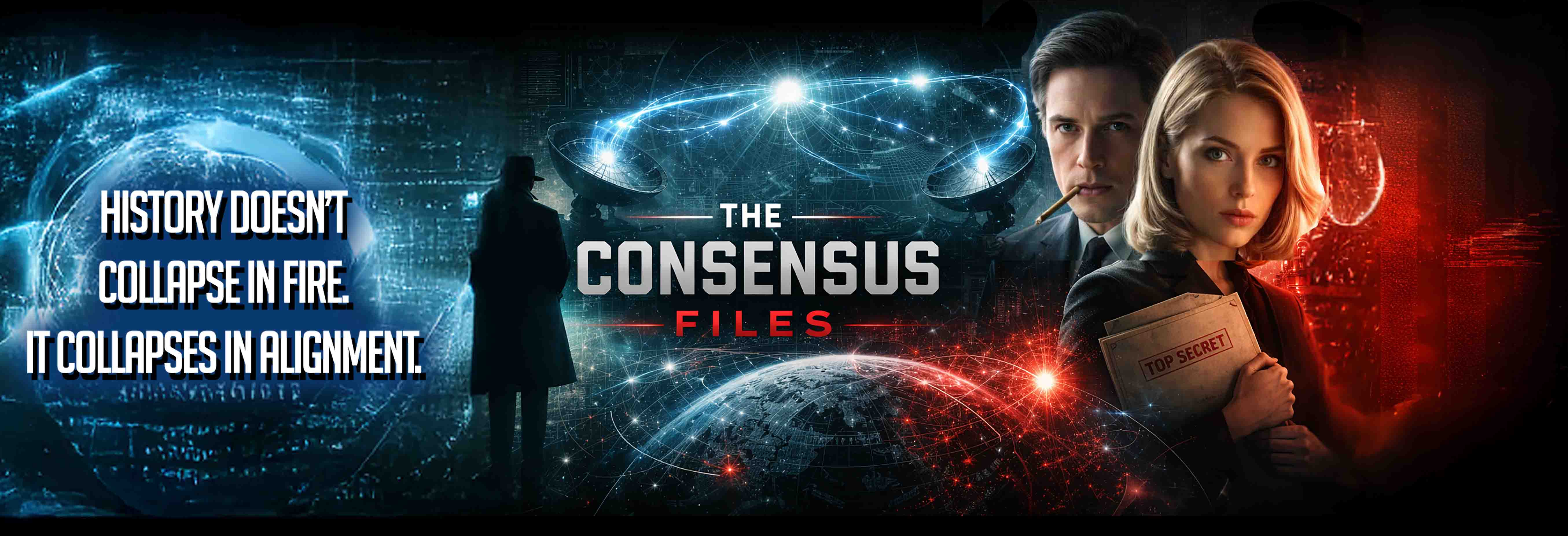 The Consensus Files follows the evolution of a technology capable of compressing dissent at critical moments of decision — accelerating agreement within rooms, governments, alliances, and, eventually, democracies themselves.